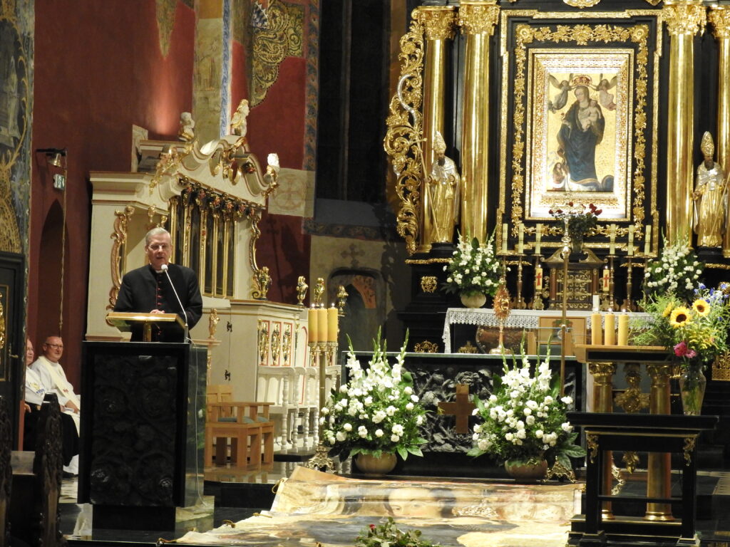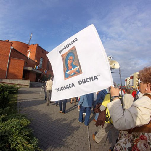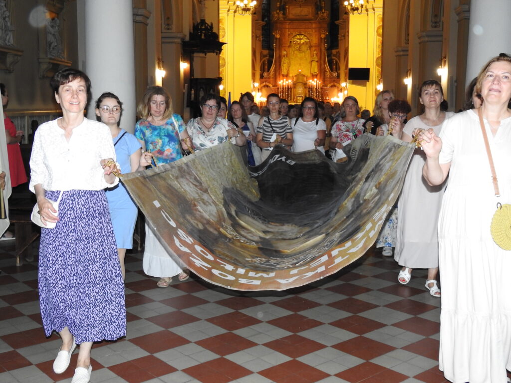 To było niezwykłe zakończenie uroczystości Wniebowzięcia Najświętszej Maryi Panny w samym centrum naszego miasta. Procesja kobiet rozpoczęła się w kościele Świętej Trójcy od śpiewu i krótkiej katechezy s.Justyny o Bożej miłości, która leczy rozczarowania i wlewa w nasze serca życiodajną nadzieję. Była to chwila na wzbudzenie intencji, aby każda z nas zawierzyła Matce Bożej to, co skrywa w sercu. Wizerunek Matki Bożej Pięknej Miłości otwierał nasz radosny pochód, który był także świadectwem dla mijanych osób i wyznaniem naszej wiary. Nasz śpiew Maryjnych pieśni na chwilę zagłuszał muzykę z pobliskich barów i tarasów. To było niezwykłe doświadczenie- zwłaszcza odcinek trasy przez Wyspę Młyńską i ul.Niedźwiedzia oraz wejście na Stary Rynek. Tam dołączyłyśmy do uczestników milczącego marszu, którzy klęczeli przed Najświętszym Sakramentem. Panowie wyruszyli z Kościoła Jezuitów po krótkiej katechezie i próbie śpiewu „Bogurodzicy”. Ich pochód także wzbudzał zainteresowanie czasem konsternację. Niektórzy klękali, widząc Najświętszy Sakrament, zatrzymywali się, robili znak krzyża. Na chwilę muzyka z pobliskich restauracji jakby trochę przycichła. Po odśpiewaniu „Bogurodzicy”, przeszliśmy do Fary na krótką modlitwę za nasze rodziny, nasze miasto.